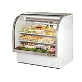 | ✚✚✚ True White Curved Glass Refrigerated Deli Case, 23.5 Cubic Ft True White Curved Glass Refrigerated Deli Case, 23.5 Cu FtThe True curved glass deli case provides high volume merchandising with exceptional refrigeration and an elegant curved glass display case. The high humidity gravity coil refrigeration system keep temperatures between 38°F and 40°F to keep meat and cheese fresh. There are 2 adjustable and lighted PVC coated shelves and the glass is tempered for safety. The exterior is durable white laminated vinyl with stainless steel trim. This display case is NSF-7 approved to hold open products. Width: 48-1/4" Depth: 35-1/4" Height: 47-3/4" Weight: 520 lbs 23.5 Cubic feet 1/3 HP 11.8 Amps NEMA config: 5-15P 300 series stainless steel NSF-7 compliant Ecomate insulation Zero ozone depletion (ODP), zero global warming potential (GWP) CFC free 134A refrigerant Refrigeration system holds temperatures between 38°F and 40°F 5 Year compression warranty -Warranty DOES NOT apply on Residential Use 2 doors 2 shelves Unit is pre-wired for 115/60/1 phase 15 amp outlet Made in the USA Model #: TCGG-48 422270